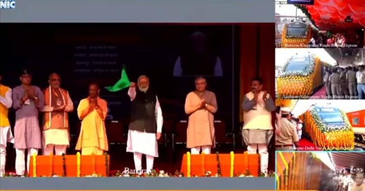 देश को आज चार नई वंदे भारत एक्सप्रेस ट्रेनों की सौगात मिल गई है. प्रधानमंत्री नरेंद्र मोदी ने वाराणसी में 4 नई वंदे भारत ट्रेनों को हरी झंडी दिखाकर इनका शुभारंभ किया. इनमें से एक ट्रेन को पीएम मोदी ने वाराणसी स्टेशन से सीधे रवाना किया, जबकि बाकी तीन ट्रेनों का शुभारंभ वीडियो कॉन्फ्रेंसिंग के […]