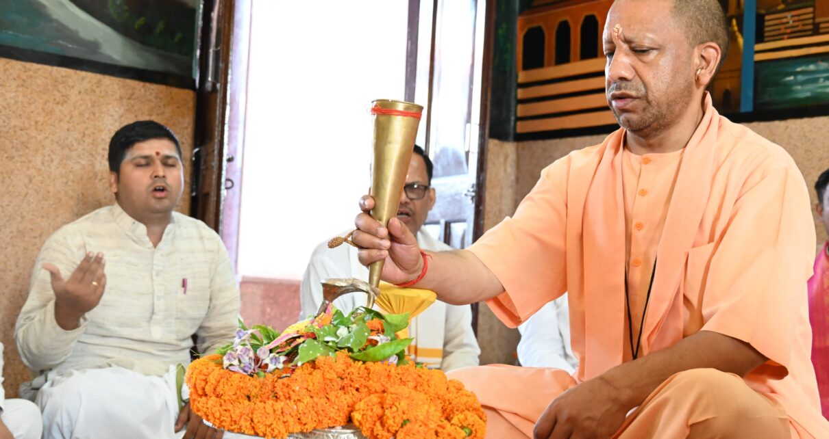 Gorakhpur : सावन के पहले दिन सीएम योगी ने हवन के साथ किया रुद्राभिषेक