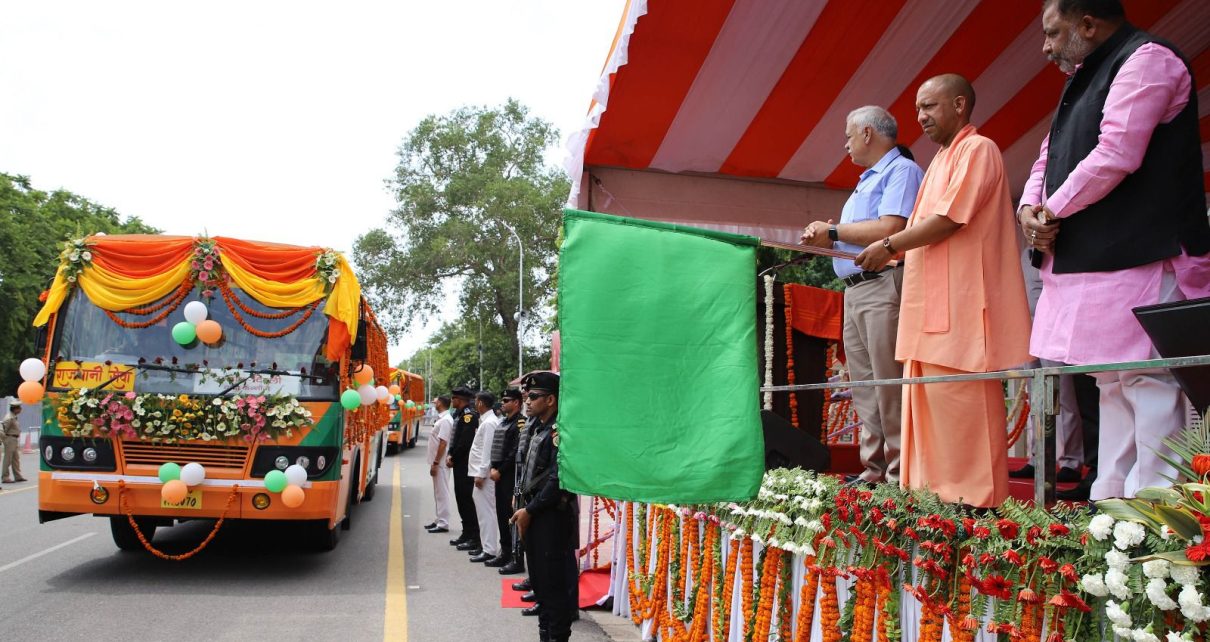 Lucknow: मुख्यमंत्री ने 93 नई राजधानी सेवा एवं 7 साधारण बीएस-6 बसों को हरी झंडी दिखाकर किया रवाना