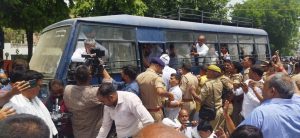 लखनऊ : सरकार के दबाव में प्रवर्तन निदेशालय द्वारा श्रीमती सोनिया गांधी जी व श्री राहुल गांधी जी को पूछ-ताछ के लिए समन भेजना निष्चित रूप से राजनैतिक प्रतिशोध की कार्यवाही है। ज्ञात हो कि आज श्री राहुल गांधी जी को पूछ-ताछ के लिए बुलाया गया था, इसके खिलाफ आज दिल्ली सहित पूरे देश के प्रदेश मुख्यालयों में कांग्रेस द्वारा ई0डी0 कार्यालय पर धरना-प्रदर्शन किया गया। जिस क्रम में आज लखनऊ में धरना-प्रदर्षन एवं गिरफ्तारी हुई।