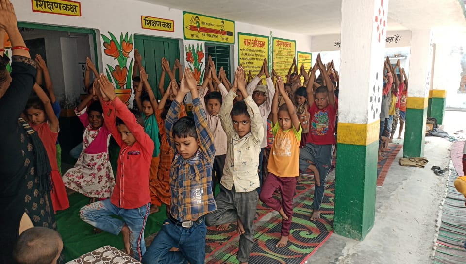 करनैलगंज/ हलधरमऊ गोंडा। आज 8 वें अंतर्राष्ट्रीय योग दिवस के अवसर पर मंगलवार को करनैलगंज तहसील क्षेत्र में अलग-अलग योग शिविर का आयोजन किया गया।वही ग्रामीणों व सरकारी विद्यालयों में भी अध्यापकों द्वारा योगाभ्यास का कार्यक्रम किया गया।शिक्षा क्षेत्र हलधर मऊ के प्राथमिक विद्यालय पहाड़ापुर- II में 7:30 बजे अध्यापिकाओं व अध्यापक द्वारा नन्हें मुन्हें बच्चो के शारीरिक फुर्ती निरोग रहने के लिए स्कूलों में छात्र छात्राओ ने योगाभ्यास किया ।विकास खंड हलधरमऊ क्षेत्र के ग्राम पंचायत पहाड़ापुर के सरकारी विद्यालयों में आज शिक्षकों तथा छात्र छात्राओं ने योगाभ्यास किया।अध्यापिका सपना,तहसीन फातिमा,सुशीला रस्तोगी,शिक्षक पीताम्बर सहित सभी शिक्षकों ने बच्चो के साथ योगा किया तथा सभी बच्चो को प्रतिदिन योगाभ्यास करने की नसीहत देते हुए कहा यदि बराबर योग किया जाए तो शरीर स्फूर्ति व बीमारी से दूर रहेगी इस लिए योगा करना चाहिए जो शारीरिक तौर पर फायदेमंद है।