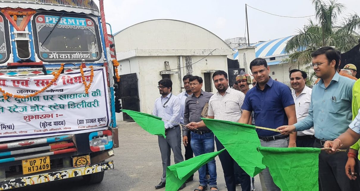 गोंडा( प्रिंस कुमार,संवाददाता ) : मंगलवार को पीजी गोदाम हरीपुर में खाद्य एवं रसद विभाग द्वारा संचालित उचित दर दुकान पर खाद्यान्न की सिंगल स्टेज डोर स्टेप डिलीवरी को हरी झंडी दिखाकर शुभारंभ करते हुए जिलाधिकारी डॉ० उज्जवल कुमार एवं मुख्य विकास अधिकारी गौरव कुमार तथा जिला पूर्ति अधिकारी सुरेंद्र यादव, जिला खाद्य विपणन अधिकारी प्रज्ञा मिश्रा ने किया रवाना। इससे सरकार द्वारा चलाई जा रही योजना को पूरी पारदर्शिता के साथ चलाई जाय तथा योजना से जनपद के पात्र लाभार्थियों को लाभान्वित भी कराया जाय। इसके साथ ही अब पूरी पारदर्शिता के साथ गोदामों से सीधे उचित दर विक्रेता की दुकानों तक खाद्यान्न पहूँचेगा। और समय से वितरण भी कराया जायेगा।