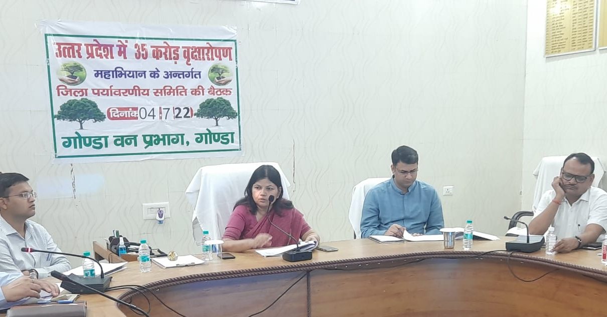 गोंडा : नोडल अधिकारी कंचन वर्मा महानिरीक्षक निबन्धन स्टाम्प एवं रजिस्ट्रेशन उत्तर प्रदेश की अध्यक्षता में जिला पर्यावरणीय समिति की बैठक कलेक्ट्रेट सभागार में सम्पन्न हुई। बैठक में जिलाधिकारी ने कहा कि समस्त सम्बन्धित विभाग आपस में समन्वय स्थापित करते हुए वृक्षारोपण के महाभियान को जन सहभागिता से बृहद स्तर पर पौधों का रोपण करने हेतु ससमय तैयारी पूरी कर ले।उन्होंने बताया कि 01 जुलाई से 07 जुलाई तक वन महोत्सव के रूप में मनाया जायेगा। जिसके लिए पौध रोपण का लक्ष्य विभागवार आवंटित किया गया है। जिसमें विभागवार पौध रोपण हेतु लक्ष्य निर्धारित किया गया है। उन्होंने सभी संबंधित विभाग को निर्देश दिया कि पौधरोपण हेतु निर्धारित लक्ष्य को गंभीरता से लेते हुए शत प्रतिशत लक्ष्य पूर्ण करें, तथा सुनियोजित ढंग से पौधरोपण कराना भी सुनिश्चित करें इसमें किसी भी प्रकार की लापरवाही न बरतें उन्होंने कहा कि वृक्षारोपण से ही पर्यावरण में आ रहे असंतुलन को रोका जा सकेगा। वृक्ष हमारे लिए कई प्रकार से लाभदायक होते हैं। इनसे अनेक प्रकार की सुविधाएं मिलती है। यह मानव जीवन के लिए प्रकृति के अनुपम उपहार हैं। उन्होंने कहा कि वन पेड़-पौधे ही नहीं हैं अपितु ये अनेकों उपयोगी जीव-जंतुओं व औषधियों का भंडार भी हैं, इससे गिर रहे जलस्तर को भी रोका जा सकेगा।