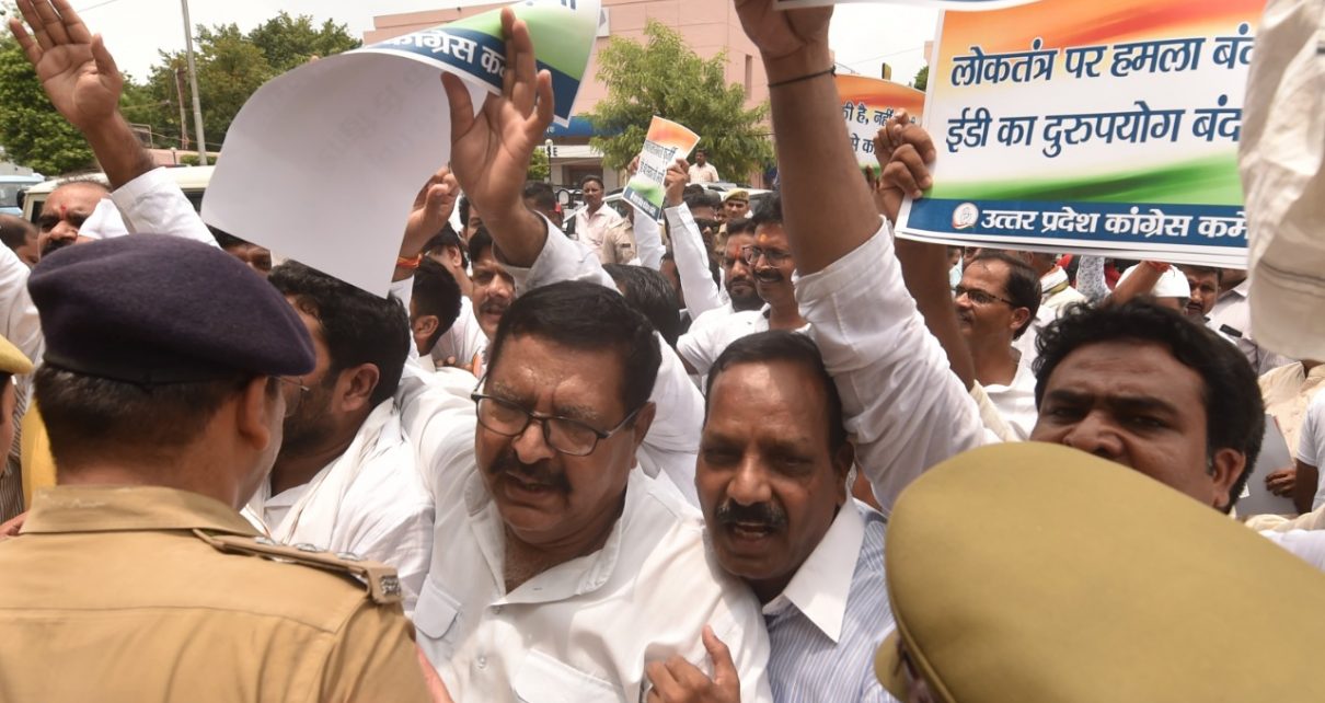 उन्होंने कहा कि इस अत्याचार के खिलाफ कांग्रेस चुप बैठने वाली नहीं है हम जनता की आवाज उनके हित के मुद्दों को उठाते रहेंगे सरकार चाहे जितना प्रयास कर ले ये आवाज बंद होने वाली नहीं है, श्रीमती सोनिया गांधी और राहुल गांधी उस गांधी परिवार की परंपरा के वाहक हैं जो देश के लिए शहादत देने से पीछे नहीं हटा ये ई. डी. की क्या बिसात है। इसी क्रम में आज लखनऊ स्थित प्रदेश प्रवर्तन निदेशालय (ईडी )कार्यालय के बाहर एवं प्रदेश के तमाम जनपदों में कांग्रेसजनों ने विरोध प्रदर्शन किया प्रदर्शन कर रहे कांग्रेसजनों पर पुलिस के द्वारा लाठीचार्ज में पार्टी की महिला नेत्री सुमन प्रजापति एवं तमाम कांग्रेसजनों को गंभीर चोटें आई। जिसके पश्चात कांग्रेस नेताओं – कार्यकर्ताओं को गिरफ्तार कर ईको गार्डेन ले जाया गया।
