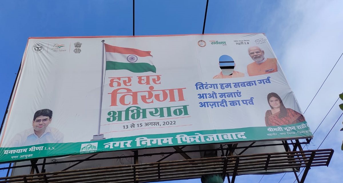 फिरोजाबाद : देश इस समय आजादी का अमृत महोत्सव मना रहा है। अलग अलग शहराें में तिरंगा यात्रा और हर घर तिरंगा कार्यक्रम चल रहे हैं। देशभक्ति से ओतप्रोत इस माहौल में शरारती तत्व खलल पैदा करने चाहते हैं। इसी इरादे से उत्तर प्रदेश के फिरोजाबाद में बड़ी साजिश रची गई है। नगर निगम की ओर से शहर के चौराहाें पर अमृत महोत्सव का संदेश देते होर्डिंग्स लगाए गए हैं। इनमें से शुक्रवार देर रात किसी ने मुख्यमंत्री योगी आदित्यनाथ और भारतीय जनता पार्टी के दूसरे बड़े नेताओं की तस्वीर को ब्लेड से काटकर अलग कर दिया गया है। पुलिस मामले की छानबीन कर रही है। फिरोजाबाद शहर में शुक्रवार की रात बड़ी शरारत हुई है। शहर में नगर निगम द्वारा लगाए गए आजादी के अमृत महोत्सव के होर्डिंग्स में से सीएम योगी आदित्यनाथ की फोटो काट दी गई है। सुबह लोग घरों से निकले तो चौराहों पर होर्डिंग्स से कटी फोटो देखकर खलबली मच गई।