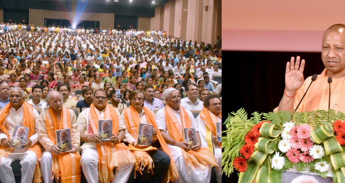 वाराणसी : उत्तर प्रदेश के मुख्यमंत्री योगी आदित्यनाथ ने वाराणसी के रुद्राक्ष इण्टरनेशनल कन्वेंशन सेण्टर में ‘मोदी@20 सपने हुए साकार’ पुस्तक के हिन्दी संस्करण का विमोचन किया। इस अवसर पर विश्व के सर्वाधिक लोकप्रिय राजनेताओं में सम्मिलित वाराणसी के जनप्रिय सांसद तथा भारत के प्रधानमंत्री श्री नरेन्द्र मोदी जी का अभिनन्दन करते हुए मुख्यमंत्री जी ने कहा कि प्रधानमंत्री के नेतृत्व से काशी और उत्तर प्रदेश अभिभूत है। प्रधानमंत्री जी के यशस्वी नेतृत्व में पूरा भारत विश्वास के साथ उठ खड़ा हुआ है। पूरी दुनिया में भारत की प्रतिष्ठा बढ़ी है। आज वैश्विक मंच पर विश्व मानवता के लिए निर्धारित हो रही किसी भी नीति का क्रियान्वयन भारत के बगैर नहीं हो सकता।