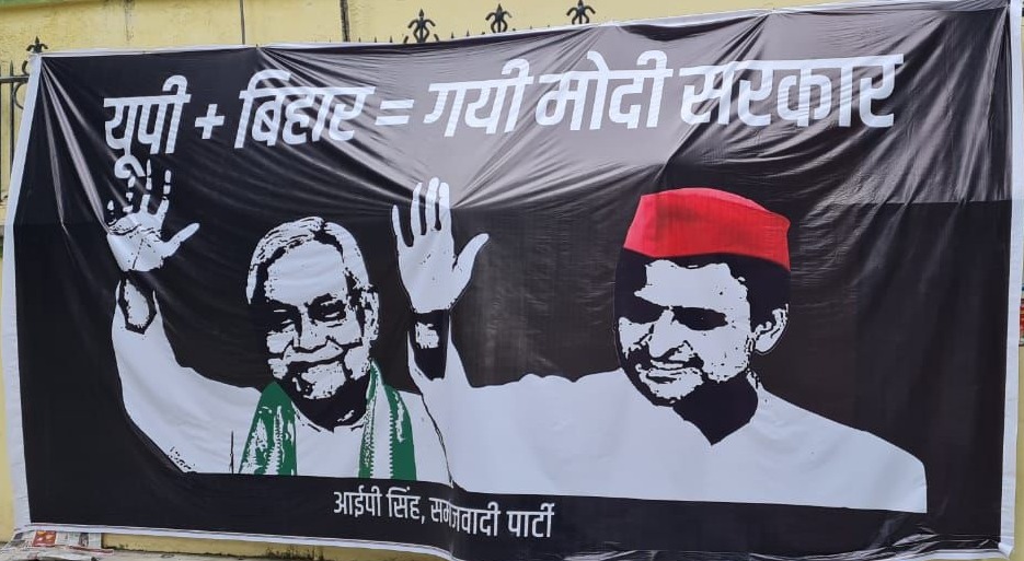 लखनऊ स्थित समाजवादी पार्टी के प्रदेश कार्यालय के बाहर बिहार के मुख्यमंत्री नीतीश कुमार और सपा अध्यक्ष अखिलेश यादव के पोस्टर लगाए जा रहे हैं जिसके माध्यम से संदेश दिया जा रहा है कि यूपी और बिहार एकजुट होकर भाजपा के लोकसभा सदस्यों की संख्या कम कर दें तो केंद्र से भाजपा की सरकार खिसक सकती है।इस तरह के पोस्टर सपा कार्यकर्ता कार्यालय के बाहर लगा रहे हैं। सपा नेता आई पी सिंह ने कहा कि पूरे प्रदेश में इस तरह का अभियान चलाया जाएगा।बिहार में जदयू के भाजपा का साथ छोड़कर राष्ट्रीय जनता दल के साथ आने के बाद विपक्ष का आत्मविश्वास बढ़ गया है। बताया जा रहा है कि इससे भाजपा के लिए मिशन 2024 चुनौतीपूर्ण हो गया है।मुख्यमंत्री नीतीश कुमार ने भी हाल में ही देश भर के कई बड़े नेताओं से मुलाकात की और विपक्ष को एकजुट किए जाने का संदेश दिया। यूपी के विधानसभा चुनाव में सपा गठबंधन ने भी 125 सीटों पर जीत दर्ज की थी। उम्मीद की जा रही है कि सपा यूपी में भाजपा को कड़ी टक्कर देगी।यूपी व बिहार में लोकसभा की कुल मिलाकर 120 सीटें हैं जिन पर 2019 के चुनाव में भाजपा ने 100 से ज्यादा सीटें जीती थी। विपक्ष इन प्रदेशों में भाजपा की सीटें कम कर केंद्र की सत्ता से उसे बेदखल करने की योजना बना रहा है