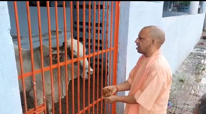 गुरुवार सुबह मुख्यमंत्री एवं गोरक्षपीठाधीश्वर योगी आदित्यनाथ ने शिवावतारी गुरु गोरखनाथ का दर्शन पूजन करने के बाद अपने गुरु ब्रह्मलीन महंत अवेद्यनाथ की समाधि पर माथा टेका। इसके बाद मंदिर परिसर का भ्रमण करते हुए गोशाला पहुंचे। गायों, बैलों और बछडों को एक-एक कर उनके नाम से पुकारा। योगी की आवाज पर गोवंश झूमते हुए उनके पास चले आए। सीएम ने उन्हें अपने हाथों से गुड़-चना खिलाया, उनके मुख को प्यार से सहलाया। योगी कुछ देर तक उन्हें दुलारते हुए बात भी करते रहे। गोवंश भी उनके पास ऐसे मगन रहे मानो उनकी सारी बात को समझ रहे हों।