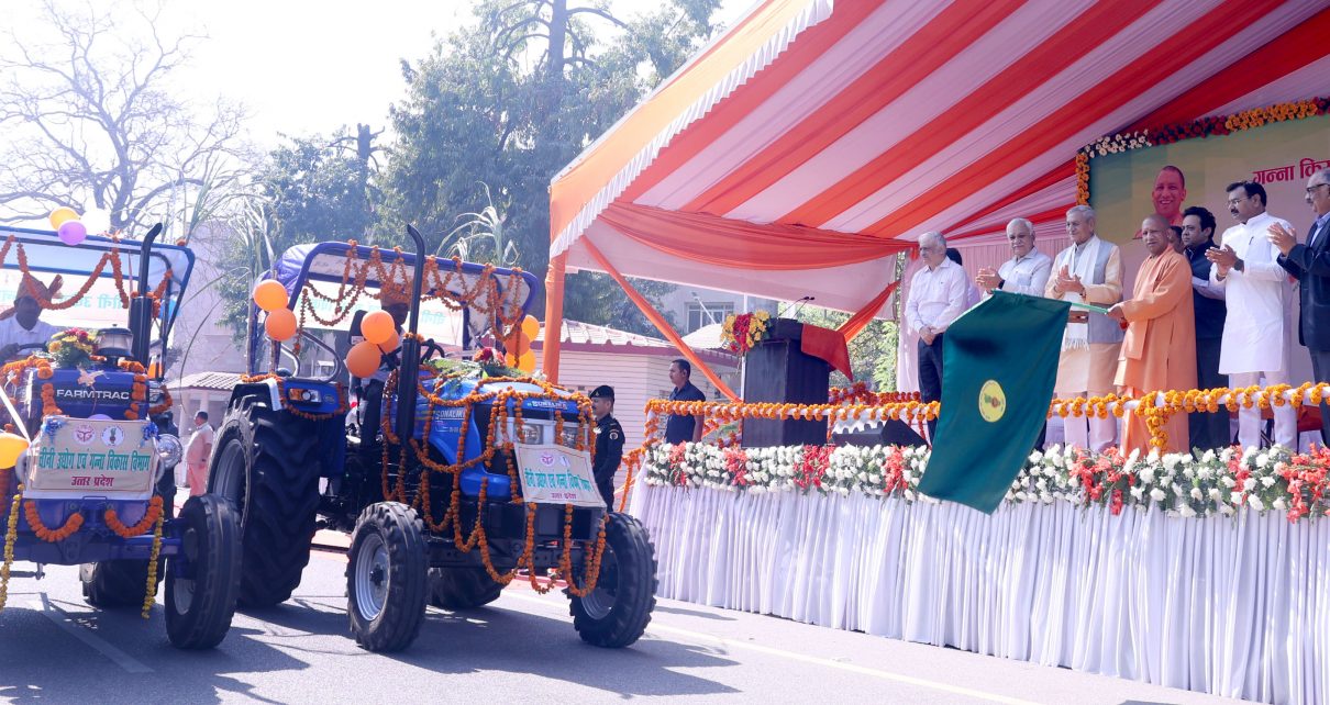 मुख्यमंत्री जी ने आज यहां अपने सरकारी आवास पर प्रदेश की सहकारी गन्ना एवं चीनी मिल समितियों में स्थापित फार्म मशीनरी बैंकों हेतु 77 टै्रक्टर को हरी झण्डी दिखाकर रवाना करने के बाद, इस अवसर पर आयोजित कार्यक्रम को सम्बोधित कर रहे थे। उन्होंने कहा कि किसान की कोई जाति, मत अथवा मजहब नहीं होता है। अन्नदाता किसान समय पर बीज, खाद, पानी, तकनीक तथा समय पर अपनी उपज का उचित दाम चाहते हैं। वर्ष 2017 से पूर्व प्रदेश के किसानों को पानी तथा बिजली की सुविधा नहीं मिलती थी। सिंचाई बुनियादी सुविधा है, इसके बावजूद अनेक सिंचाई परियोजनाएं दशकों से लम्बित थीं। प्रधानमंत्री कृषि सिंचाई योजना के समयबद्ध क्रियान्वयन के परिणामस्वरूप हमारी सरकार ने प्रदेश में लगभग 22 लाख हेक्टेयर भूमि पर अतिरिक्त सिंचाई की सुविधा उपलब्ध करायी है।
