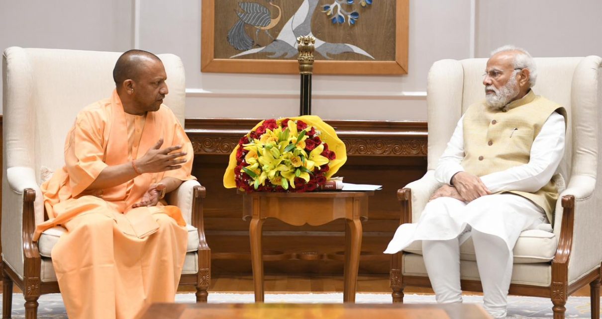 नई दिल्ली : उत्तर प्रदेश के मुख्यमंत्री योगी आदित्यनाथ ने मंगलवार को प्रधानमंत्री नरेंद्र मोदी से मुलाकात की। उत्तर प्रदेश सरकार ने इसे शिष्टाचार भेंट बताया। इसने बैठक की तस्वीरें भी साझा कीं। राज्य के मुख्यमंत्री के रूप में आदित्यनाथ का यह दूसरा कार्यकाल है। आदित्यनाथ यहां केंद्रीय मंत्री अनुप्रिया पटेल के करीबी रिश्तेदार के विवाह समारोह में भी शामिल हो सकते हैं।