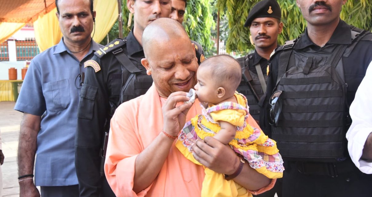 गोरखपुर : दिव्यांग सफाईकर्मी विवेक और उनकी पत्नी संध्या की मन्नत मुख्यमंत्री एवं गोरक्षपीठाधीश्वर योगी आदित्यनाथ ने पूरी कर मानो उन्हें पूरी दुनिया की खुशी दे दी है। सीएम योगी ने सोमवार सुबह मंदिर परिसर में विवेक की सात माह की बिटिया का अन्नप्राशन कराया और आशीर्वाद दिया तो विवेक की आंखें खुशी से छलक उठीं।