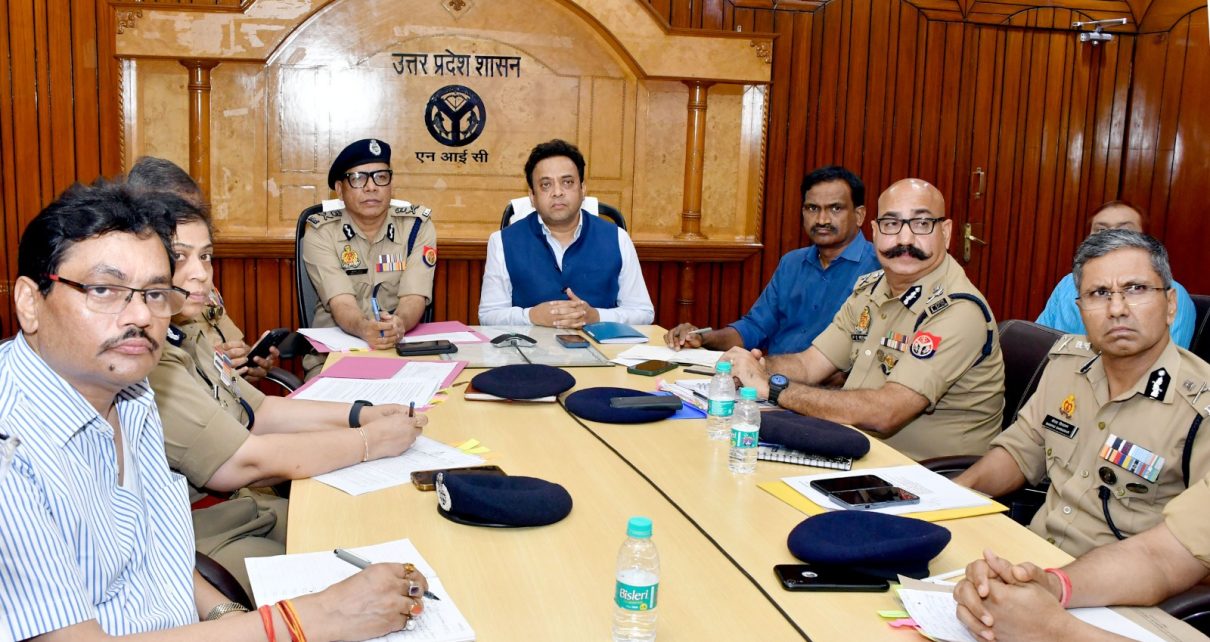 प्रमुख सचिव गृह एवं पुलिस महानिदेशक आज योजना भवन में लखनऊ, अयोध्या तथा बरेली मण्डलों के मण्डलायुक्त, पुलिस आयुक्त, जिलाधिकारी एवं पुलिस अधीक्षकों के साथ वीडियो कांफ्रेंसिंग के माध्यम से विस्तृत समीक्षा बैठक करते हुए आवश्यक दिशा-निर्देश दे रहे थे।