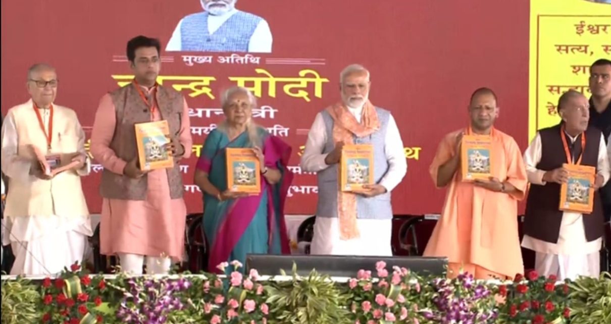 पीएम मोदी गीता प्रेस पहुंच कर लीलाचित्र मंदिर का भ्रमण किया। इस दौरान उन्होंने पुराने प्रिटिंग मशीन को देखा। प्रधानमंत्री नरेंद्र मोदी ने शिव महापुराण के विशिष्ट अंक का विमोचन किया। इसके बाद उन्होंने नेपाली भाषा के शिव महापुराण का भी विमोचन किया। सीएम योगी ने कहा कि पूरी दुनिया योग के रूप में भारत की तरफ देख रही है। गीता प्रेस अपने 100 साल के शानदार सफर को आगे बढ़ा रहा है। यहां 75 साल में कोई प्रधानमंत्री नहीं आया। पीएम मोदी की अध्यक्षता में गीता प्रेस को गांधी शांति पुरस्कार दिया गया। उन्होंने कहा कि गोरखपुर बंद खाद कारखाना अब 110 प्रतिशत क्षमता के साथ उत्पाद कर रहा है। 2014 में गोरखपुर के पास एक फ्लाइट था, अब 14 से अधिक फ्लाइट उड़ान भर रही है। गोरखपुर में एम्स सपना था। वहीं रामगढ़ताल अपराधिक अड्डा बना गया था। अब यहां पूरे देश से लोग घूमने आ रहे हैं। वहीं वंदे भारत ट्रेन पूर्वांचल के लोगों के लिए उपहार है।