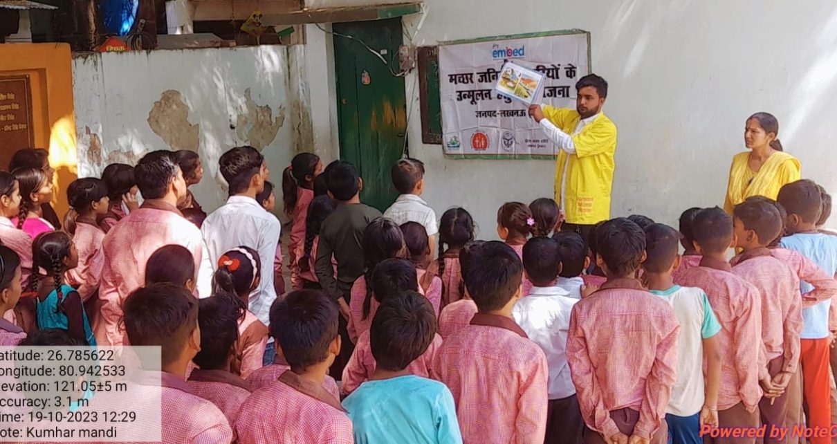 लखनऊ ( रज़ी अहमद ,DNM NETWORK): फैमिली हेल्थ इंडिया गोदरेज एवं जिला स्वास्थ्य समिति के सहयोग से संचालित एंबेड योजना के तहत खारिक प्रथम वार्ड कुम्हार मंडी में उच्च प्राथमिक विद्यालय तेलीबाग विधालय में बच्चों को जागरूक किया गया, जिसमें फैमिली हेल्थ इंडिया के बीसीसीएफ वीरेंद्र विक्रम सिंह ने बच्चों को मच्छर जनित बीमारी के जीवन चक्र के बारे में समझाया कि वह चार अवस्था के होते हैं (अंडा, लार्वा, प्युपा, और द्रोण) मच्छर को पैदा होने नहीं देना है और मच्छरों को कौन सी अवस्था में खत्म कर सकते हैं इस कि जानकारी दी तथा बच्चों को जागरूक करते हुए बताया कि सभी को हर रविवार को में जमे हुए पानी की निकासी जरूर करें जैसे कूलर, फ्रिज के पीछे ट्रे, टूटे-फूटे बर्तन को साफ करके हम डेंगू जैसी बीमारी से बच सकते हैं और फुल आस्तीन के कपड़े पहने।