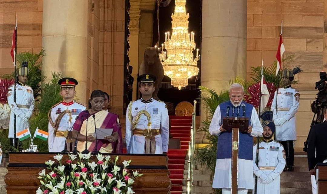 नरेंद्र मोदी (PM Narendra Modi) ने रविवार को तीसरी बार भारत के प्रधानमंत्री पद की शपथ ली. राष्ट्रपति भवन में हुए भव्य समारोह में पीएम मोदी समेत 72 सांसदों ने मंत्री पद की शपथ ली. पीएम के अलावा 30 कैबिनेट मंत्री, पांच राज्य मंत्री (स्वतंत्र प्रभार) और 36 राज्य मंत्रियों ने पद और गोपनीयती की शपथ ली. पीएम मोदी ने शपथ ग्रहण कर पहले प्रधानमंत्री जवाहरलाल नेहरू की बराबरी कर ली, जो लगातार तीन बार देश के प्रधानमंत्री रह चुके हैं.