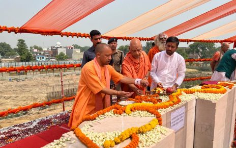 अयोध्या: राम जन्मभूमि मंदिर के मुख्य भवन के गर्भगृह की आधारशिला आज सीएम योगी आदित्यनाथ रखेंगे। इसके लिए वे अयोध्या पहुंच गए हैं। सबसे पहले उन्होंने हनुमानगढ़ी पहुंचकर पूजा-अर्चना की। इसके बाद राम जन्मभूमि परिसर के लिए रवाना हुए। इससे पहले मंदिर परिसर में विविध अनुष्ठान के कार्यक्रम चल रहे हैं। रामलला के गर्भ गृह […]