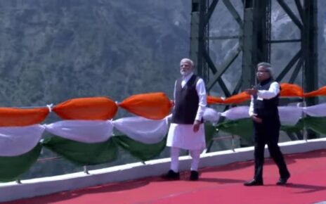 प्रधानमंत्री नरेंद्र मोदी ने चिनाब नदी पर बनी चिनाब ब्रिज का उद्धाटन किया है. जम्मू-कश्मीर के लोगों को प्रधानमंत्री ने बड़ी सौगात दी है. चिनाब ब्रिज से तस्वीरें सामने आई हैं. जिसमें प्रधानमंत्री हाथ में तिरंगा लेकर चलते हुए नजर आ रहे हैं. प्रधानमंत्री नरेंद्र मोदी ने भारत के पहले केबल रेल पुल अंजी पुल […]