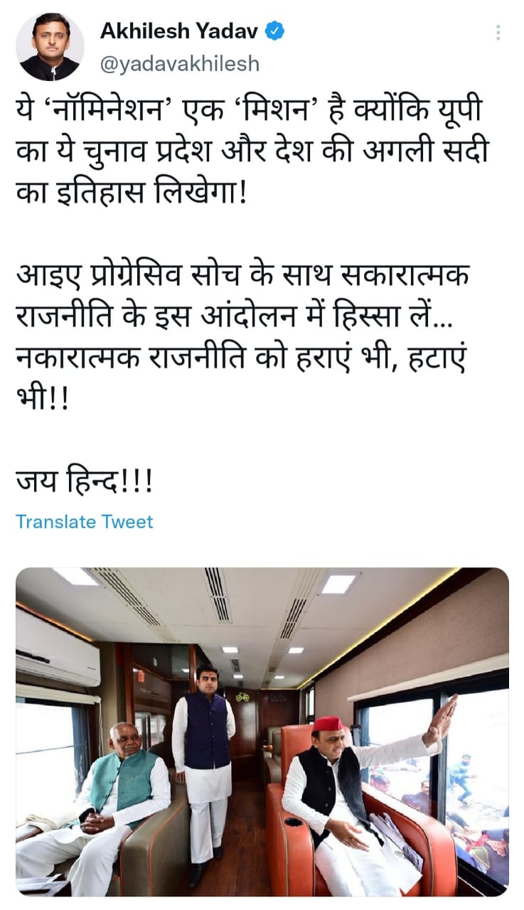 मैनपुरी जिले की करहल विधानसभा सीट से समाजवादी पार्टी के राष्ट्रीय अध्यक्ष अखिलेश यादव चुनाव लड़ रहे हैं। सोमवार को वह नामांकन दाखिल करने के लिए मैनपुरी पहुंचे । सीधे कलेक्ट्रेट पर पहुंचकर अखिलेश ने नामांकन किया । अखिलेश यादव के आने से सपा कार्यकर्ताओं में उत्साह है। वहीं प्रशासन भी इसे लेकर अलर्ट मोड पर रहा